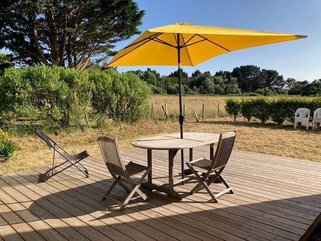 Maison neuve proche de la plage des Grands Sables avec une vue dégagée sur la mer. Environnement calme, location de qualité.
