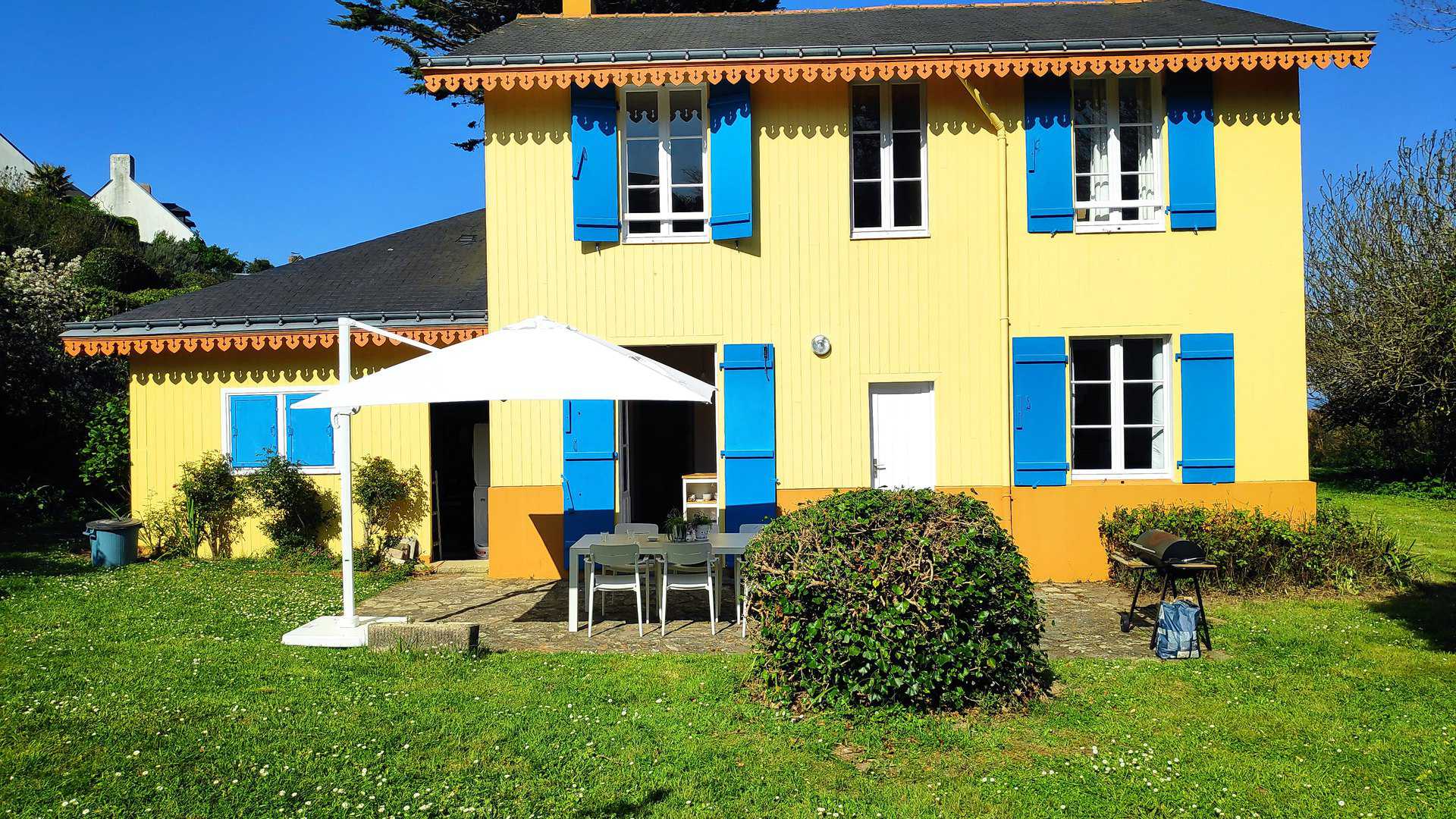 Le jardin de 1 000 m², soigneusement aménagé, invite à la détente avec salon de jardin, barbecue, parasol et chaises longues. Un cadre idéal pour profiter pleinement de la proximité immédiate de la mer.