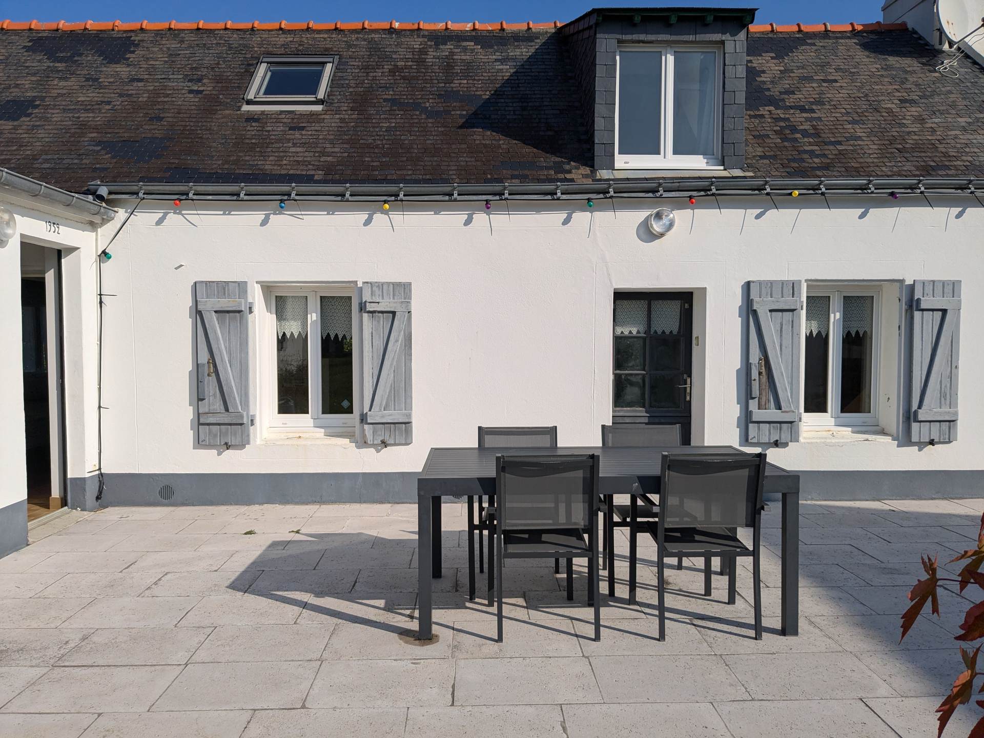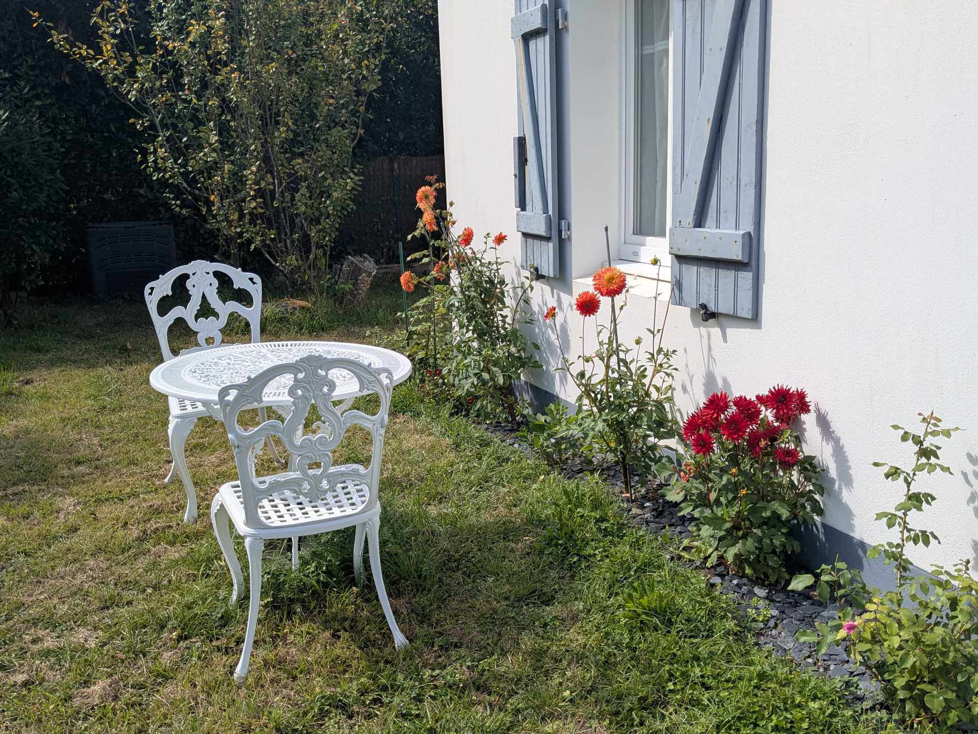 Maison mitoyenne avec jardin arboré et clos de 500 m2 avec terrasse de 20m2, salon de jardin et barbecue.