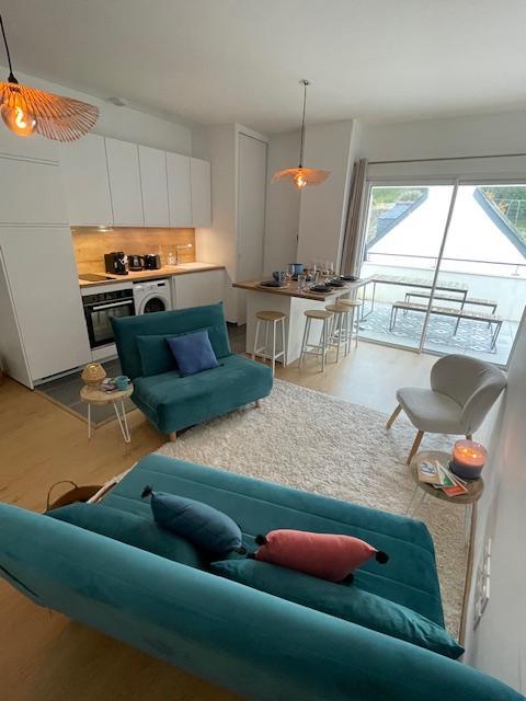 - Un séjour - cuisine (29.3m²) avec une banquette convertible 140 x 190 cm.